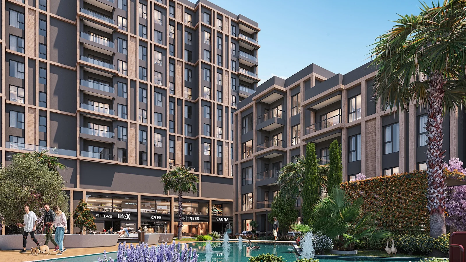 A lifestyle integrated with landscape and in harmony with the city…At Siltaş Wings, where more than 60% of the living spaces are dedicated to landscaping; scent gardens, walking paths, open areas, and the W-shaped ornamental pool reflecting the identity of the project redefine city life in balanced harmony with nature.