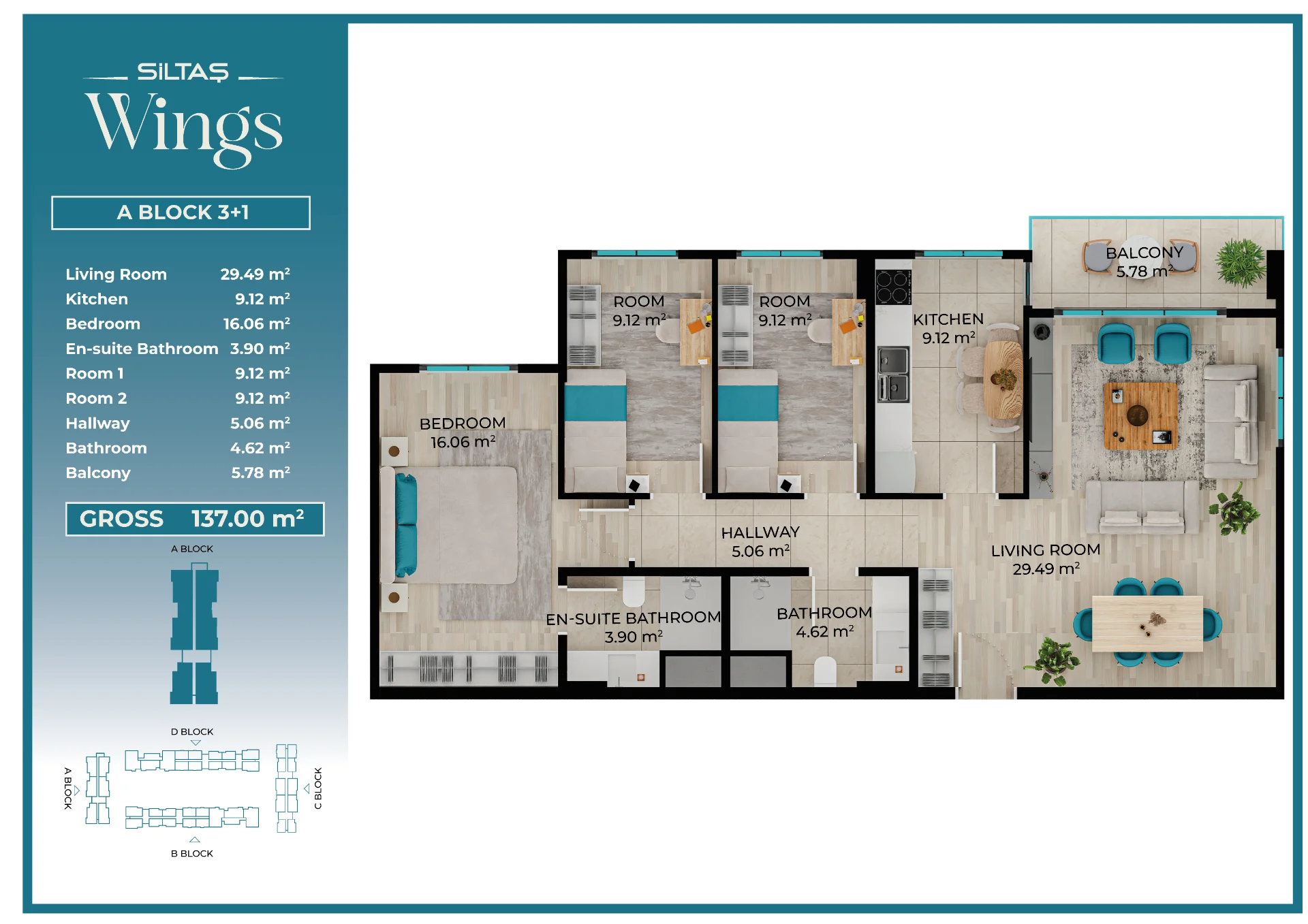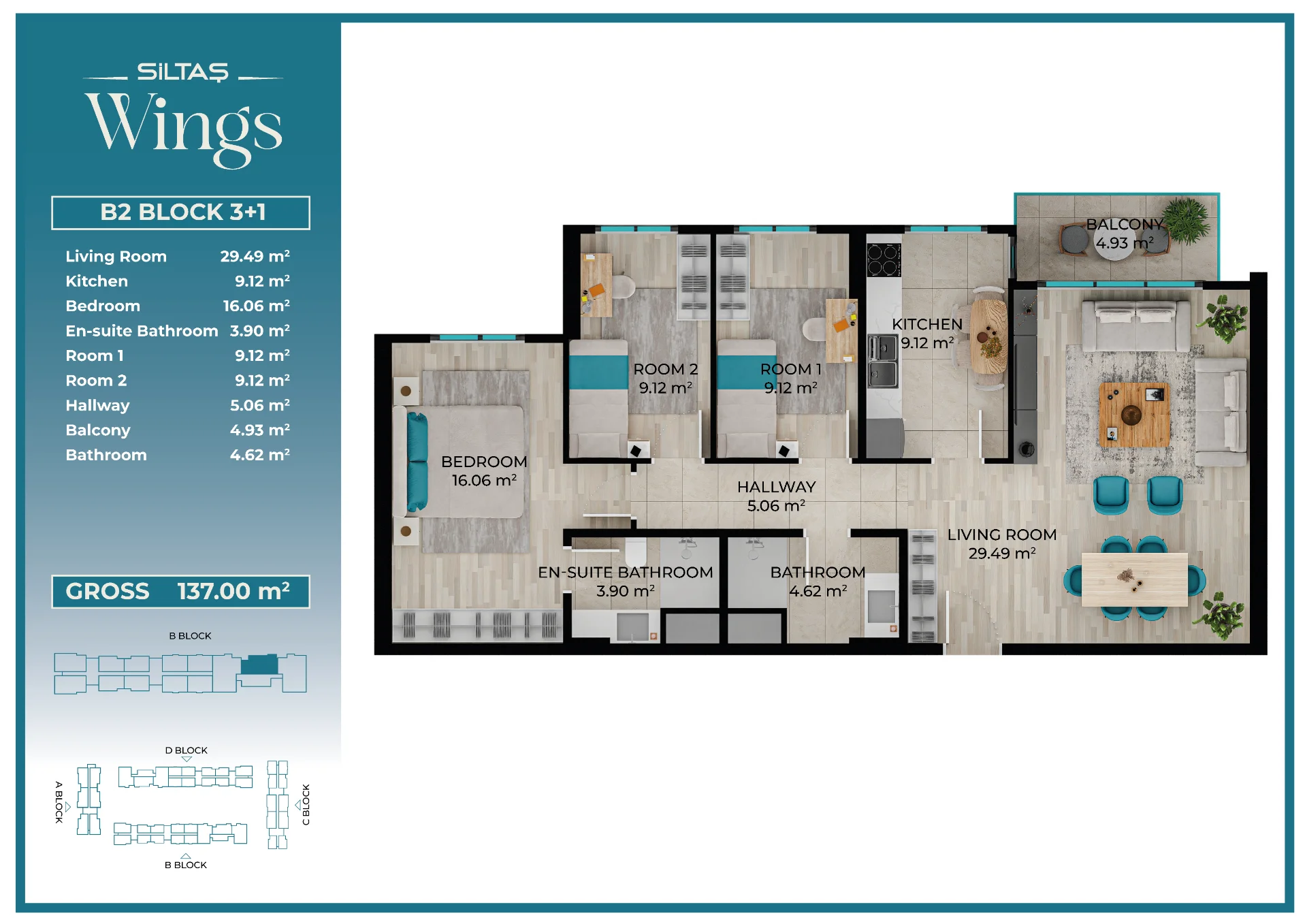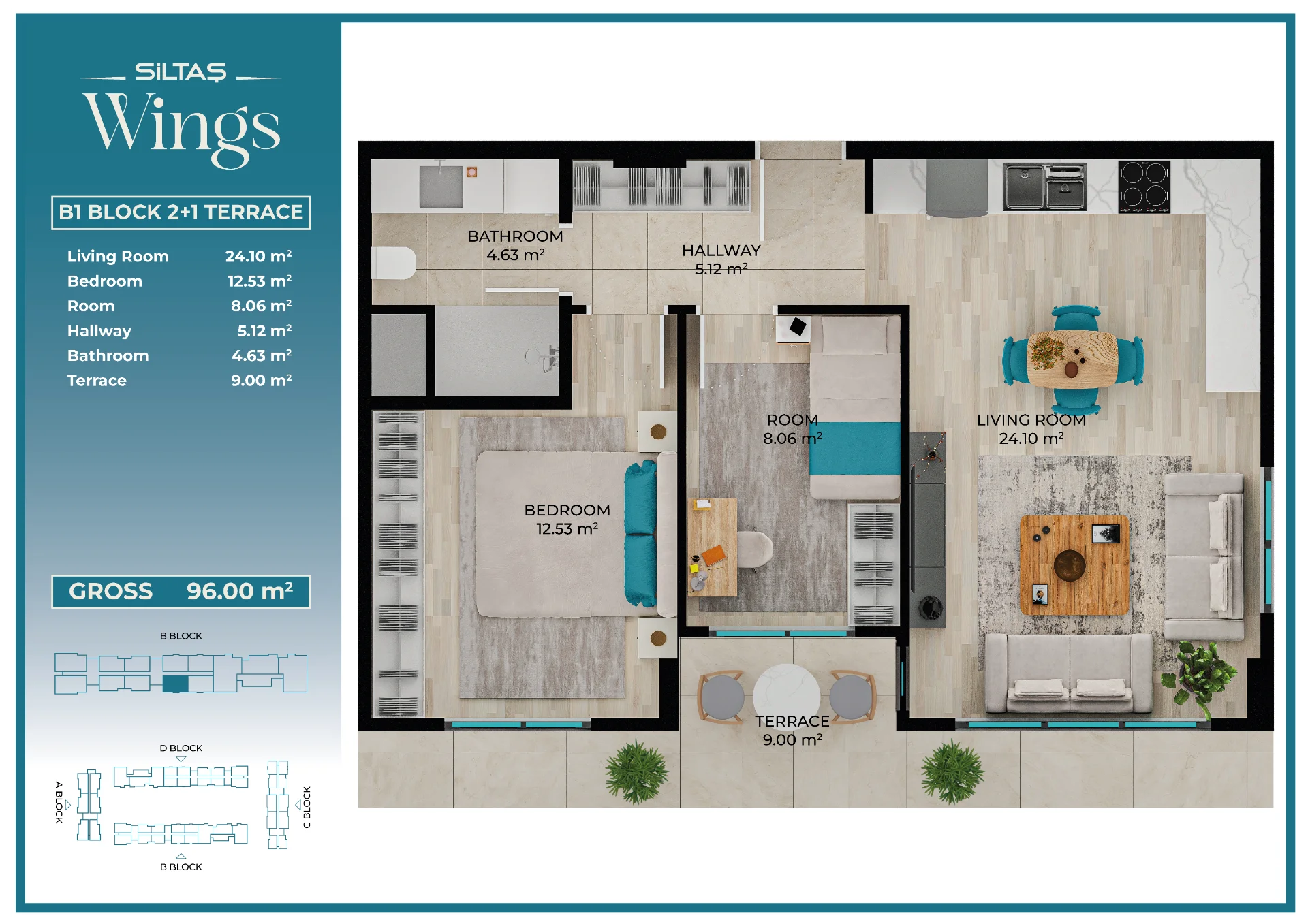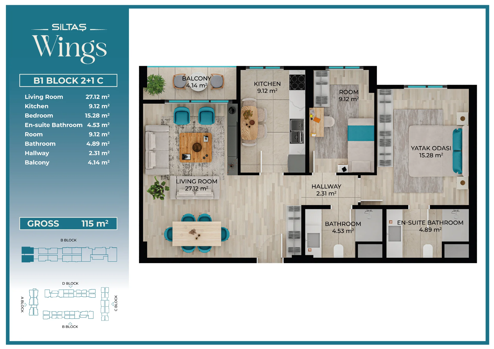 Floor Plansadmin2026-03-28T19:44:20+00:00Floor PlansAnasayfaFloor Plans Apartment Types Plans designed for different lifestyle needs.The same high standards in every apartment type reflect the consistent quality approach of Siltaş Yapı across all its projects. BLOCK A BLOCK B BLOCK C BLOCK D