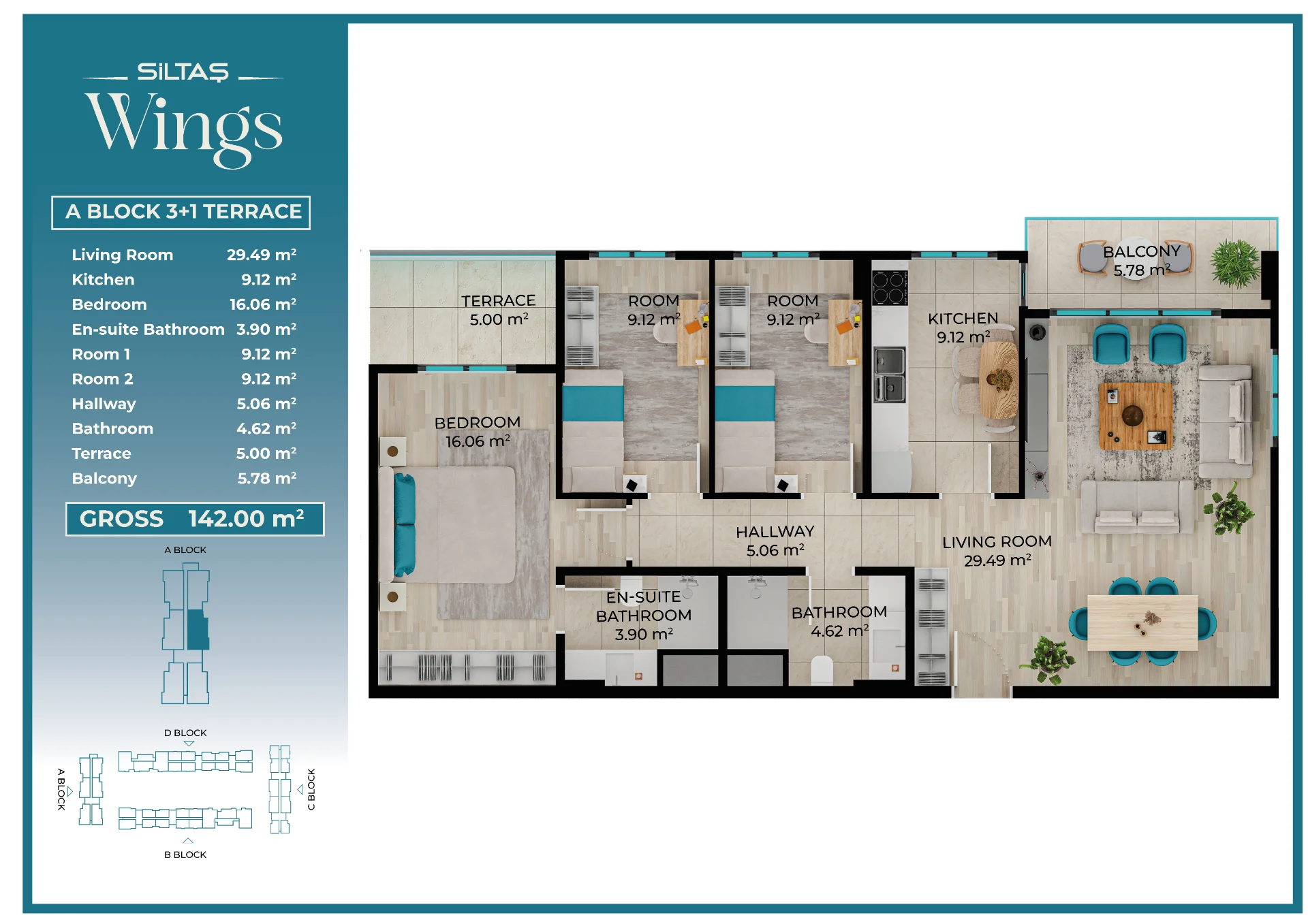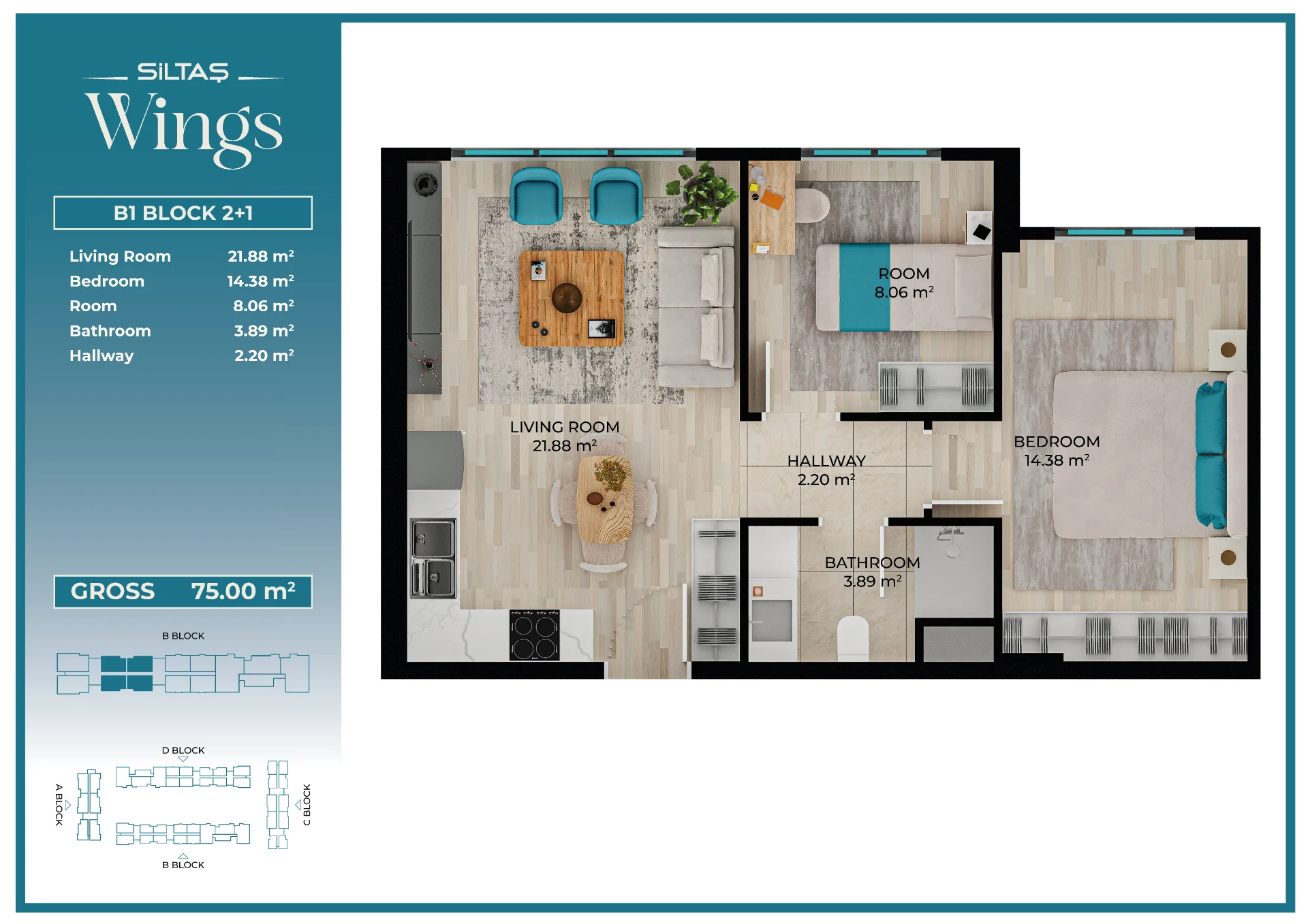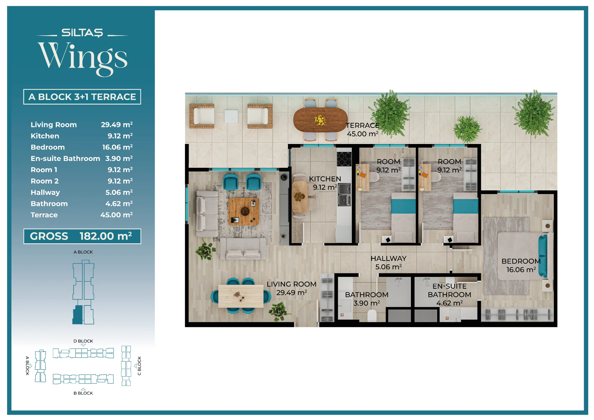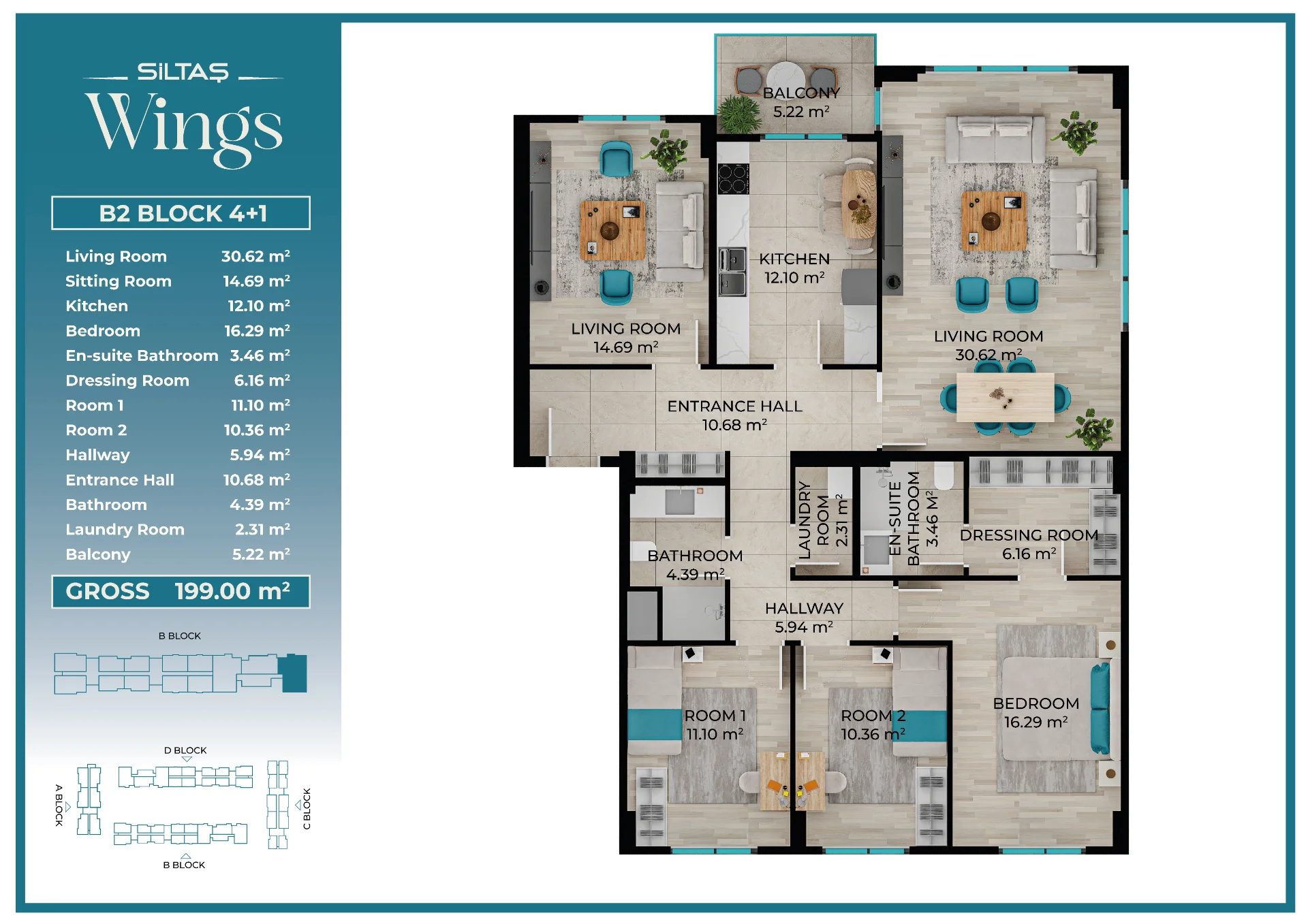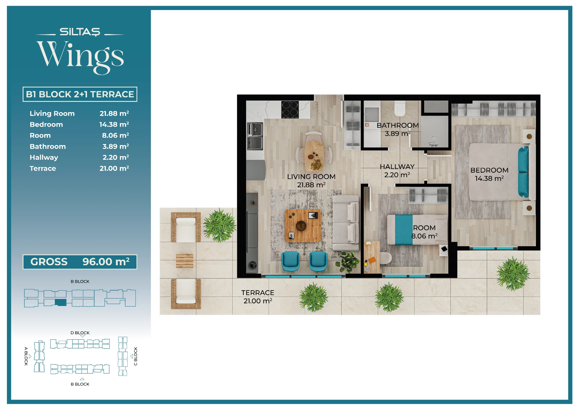 Floor Plansadmin2026-03-28T19:44:20+00:00Floor PlansAnasayfaFloor Plans Apartment Types Plans designed for different lifestyle needs.The same high standards in every apartment type reflect the consistent quality approach of Siltaş Yapı across all its projects. BLOCK A BLOCK B BLOCK C BLOCK D