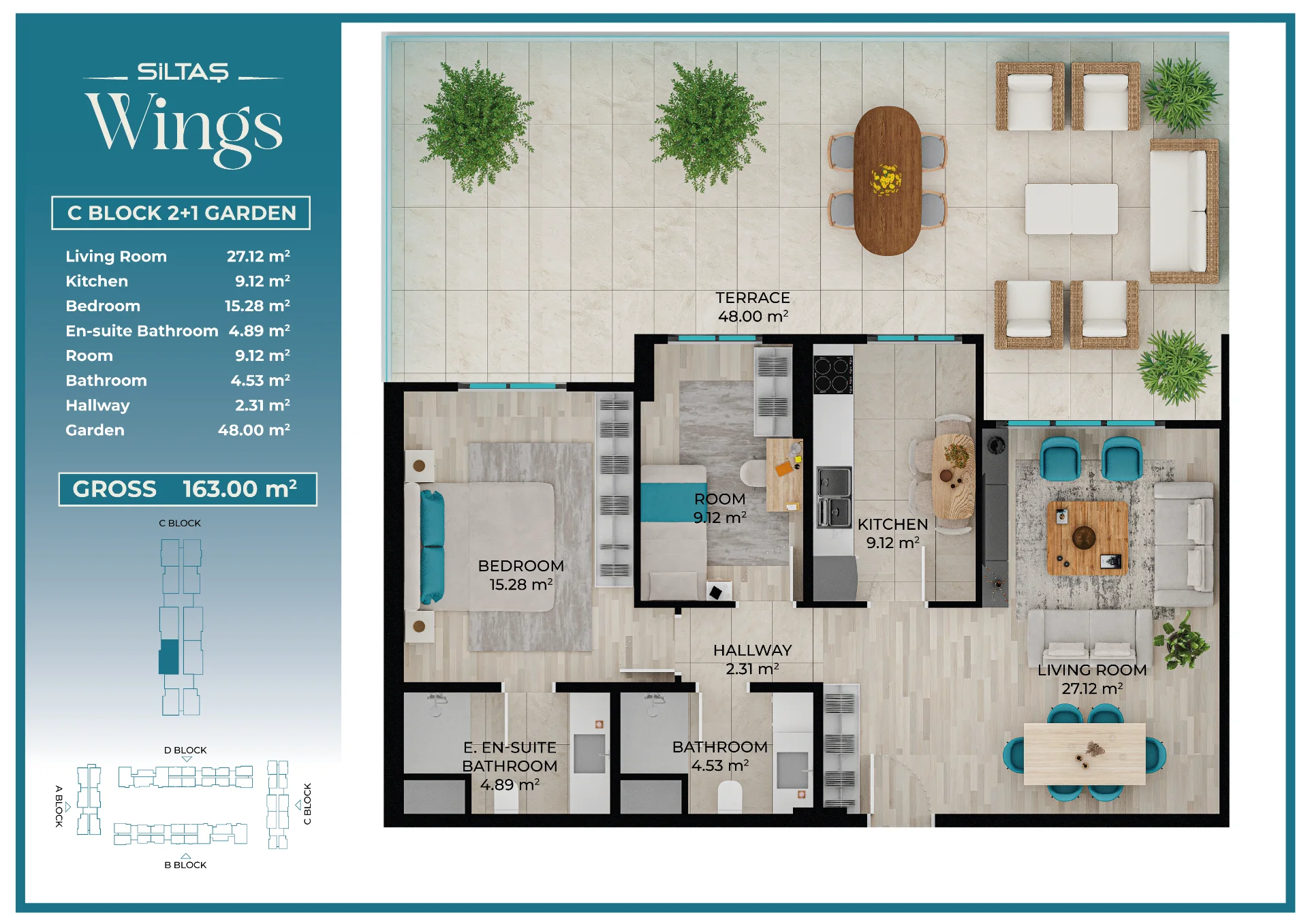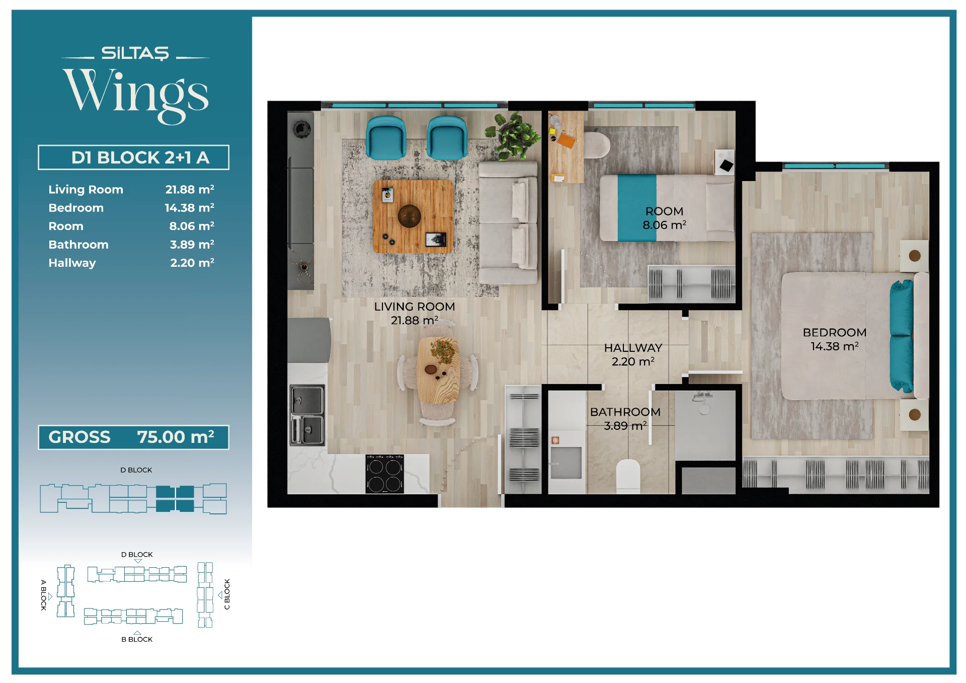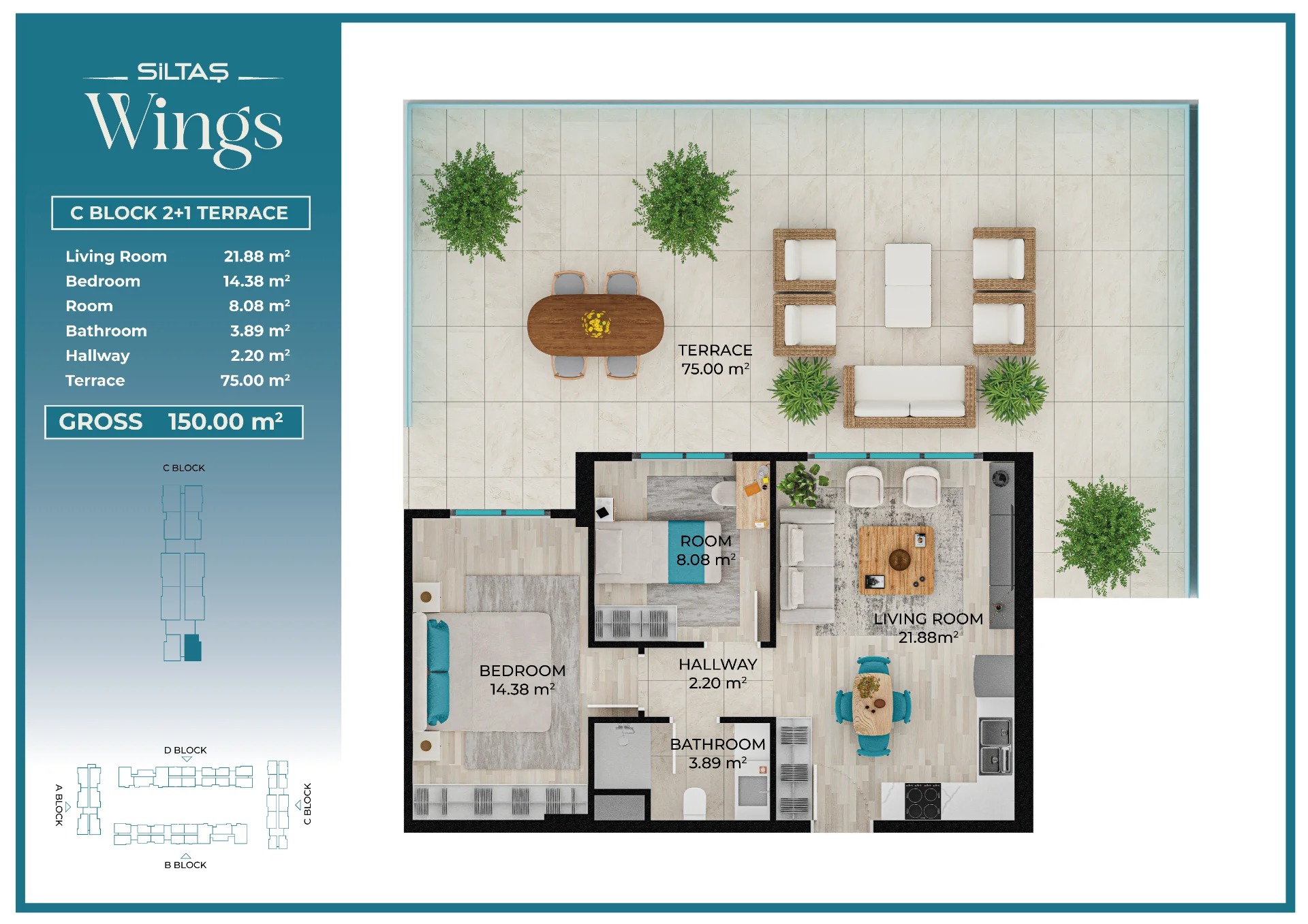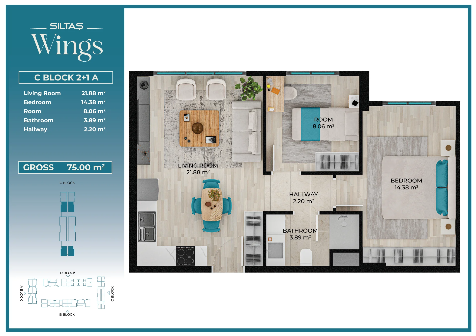 Floor Plansadmin2026-03-28T19:44:20+00:00Floor PlansAnasayfaFloor Plans Apartment Types Plans designed for different lifestyle needs.The same high standards in every apartment type reflect the consistent quality approach of Siltaş Yapı across all its projects. BLOCK A BLOCK B BLOCK C BLOCK D