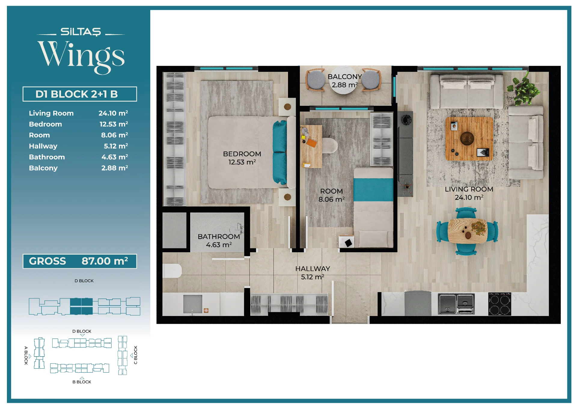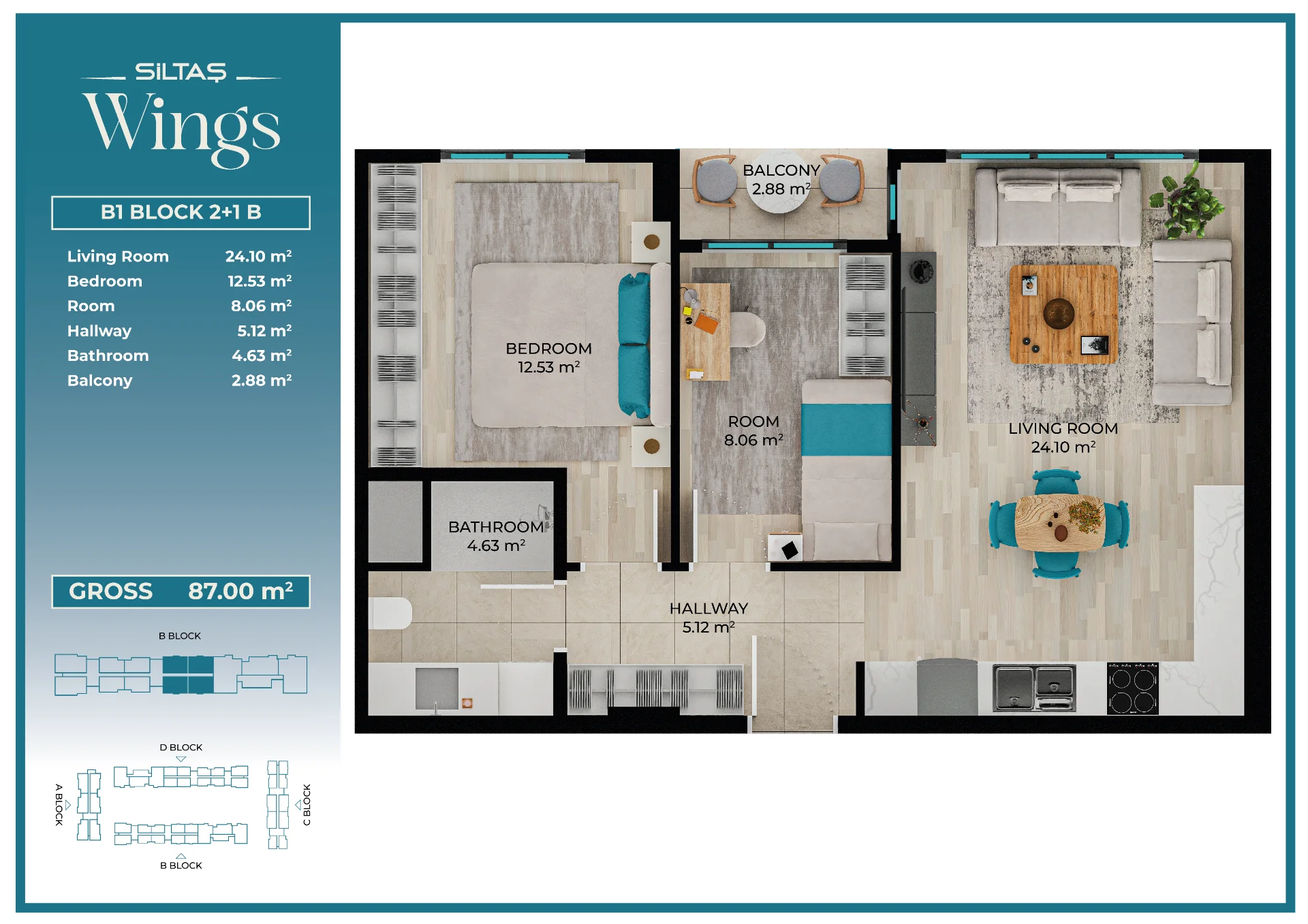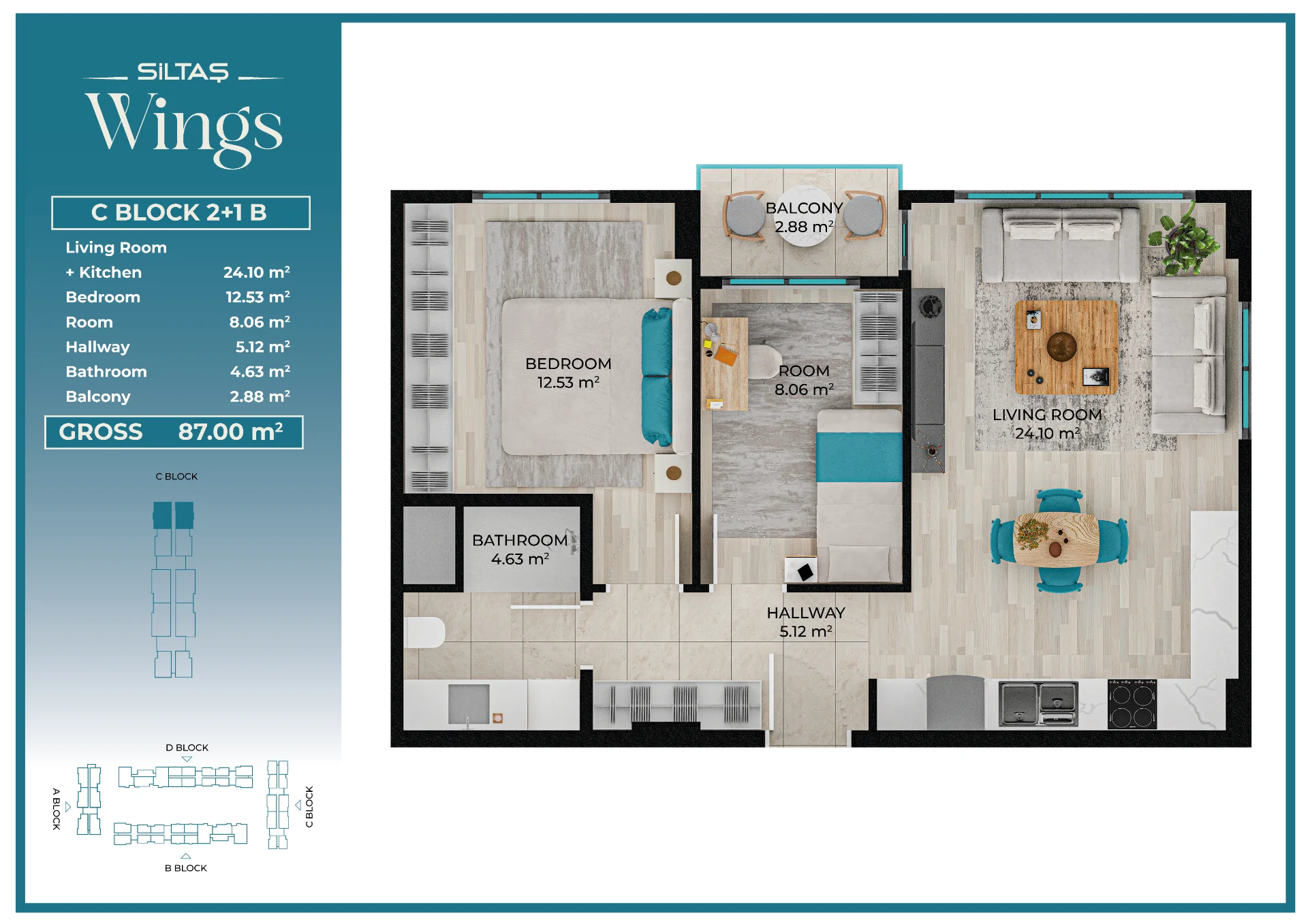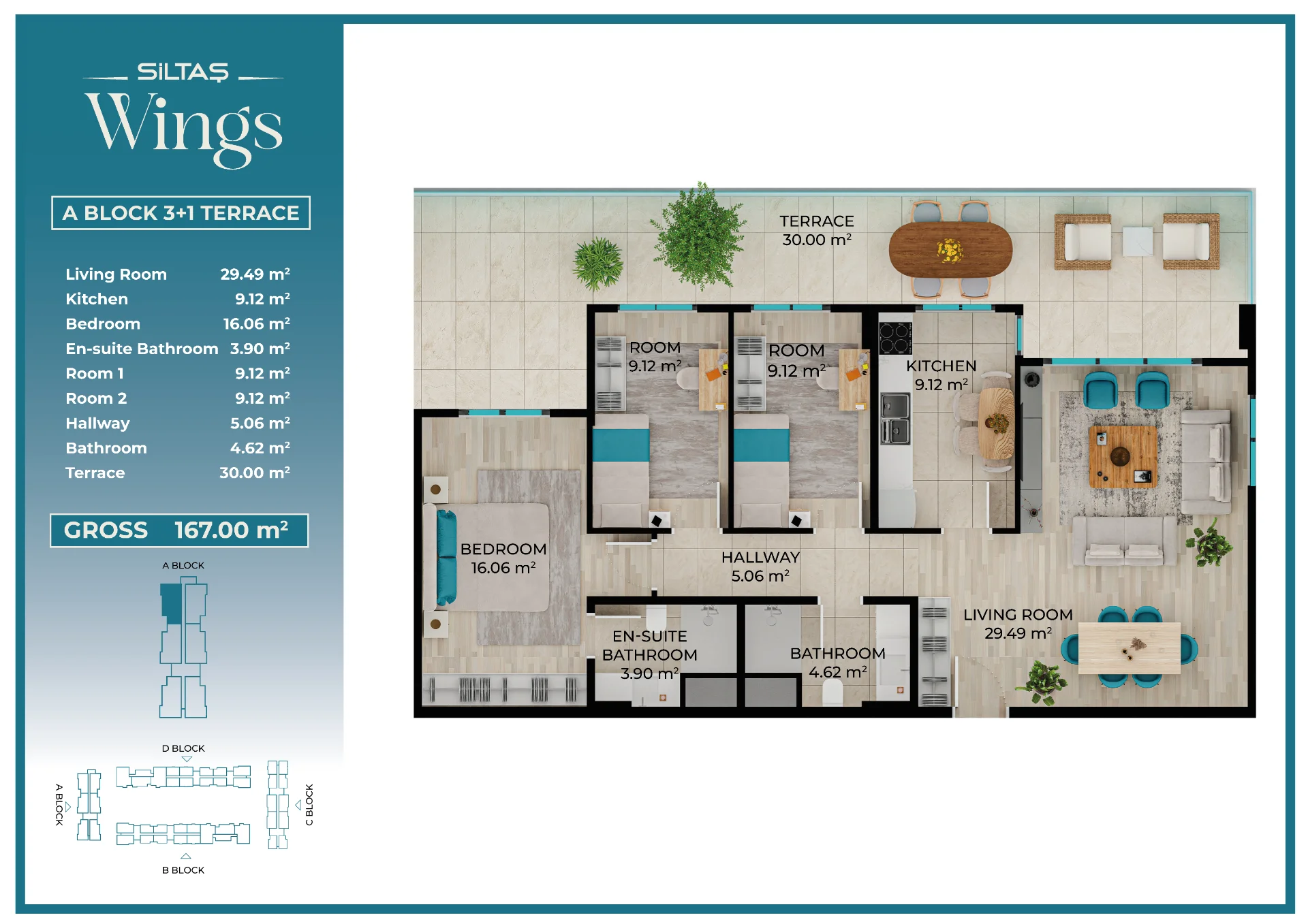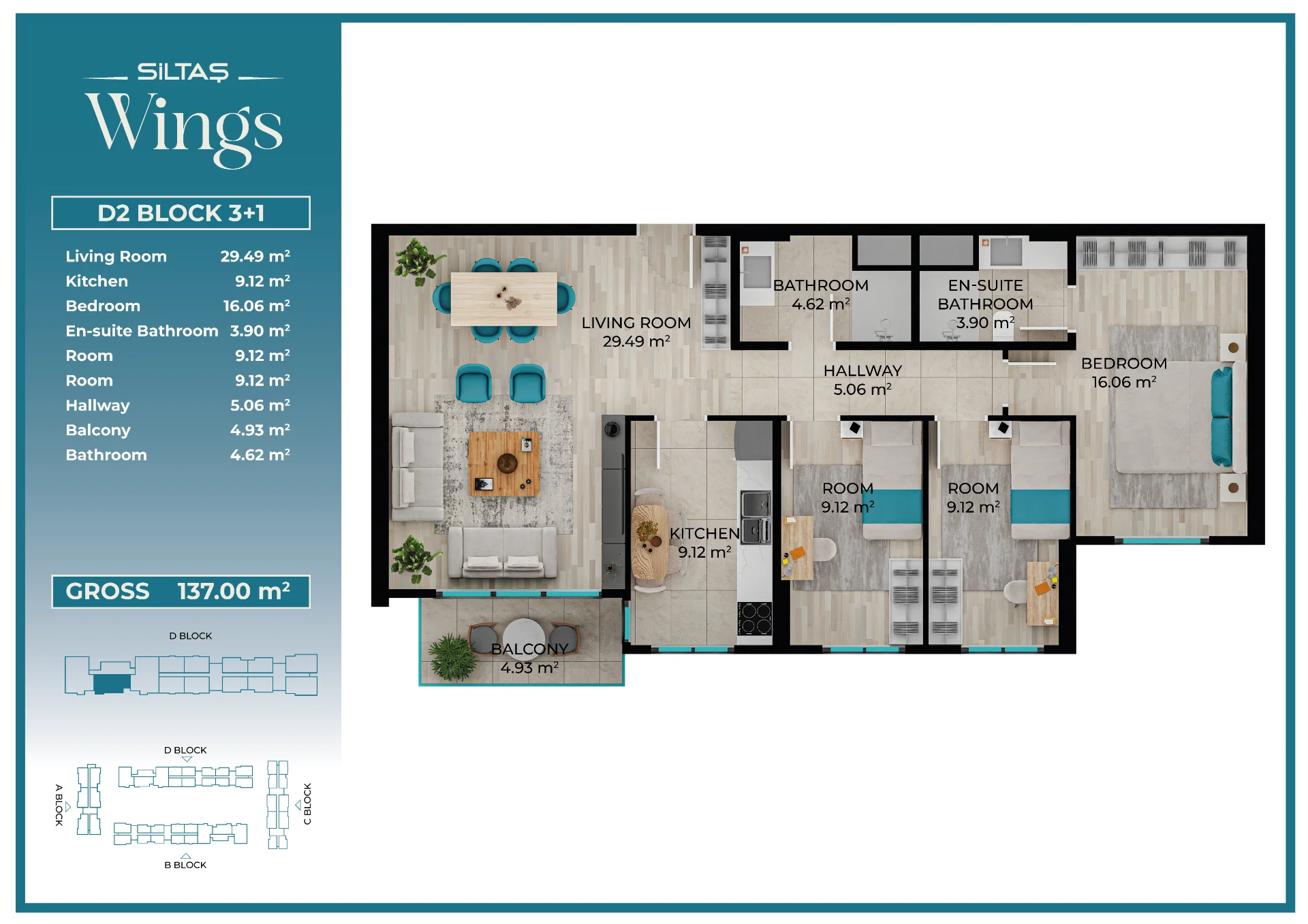 Floor Plansadmin2026-03-28T19:44:20+00:00Floor PlansAnasayfaFloor Plans Apartment Types Plans designed for different lifestyle needs.The same high standards in every apartment type reflect the consistent quality approach of Siltaş Yapı across all its projects. BLOCK A BLOCK B BLOCK C BLOCK D
