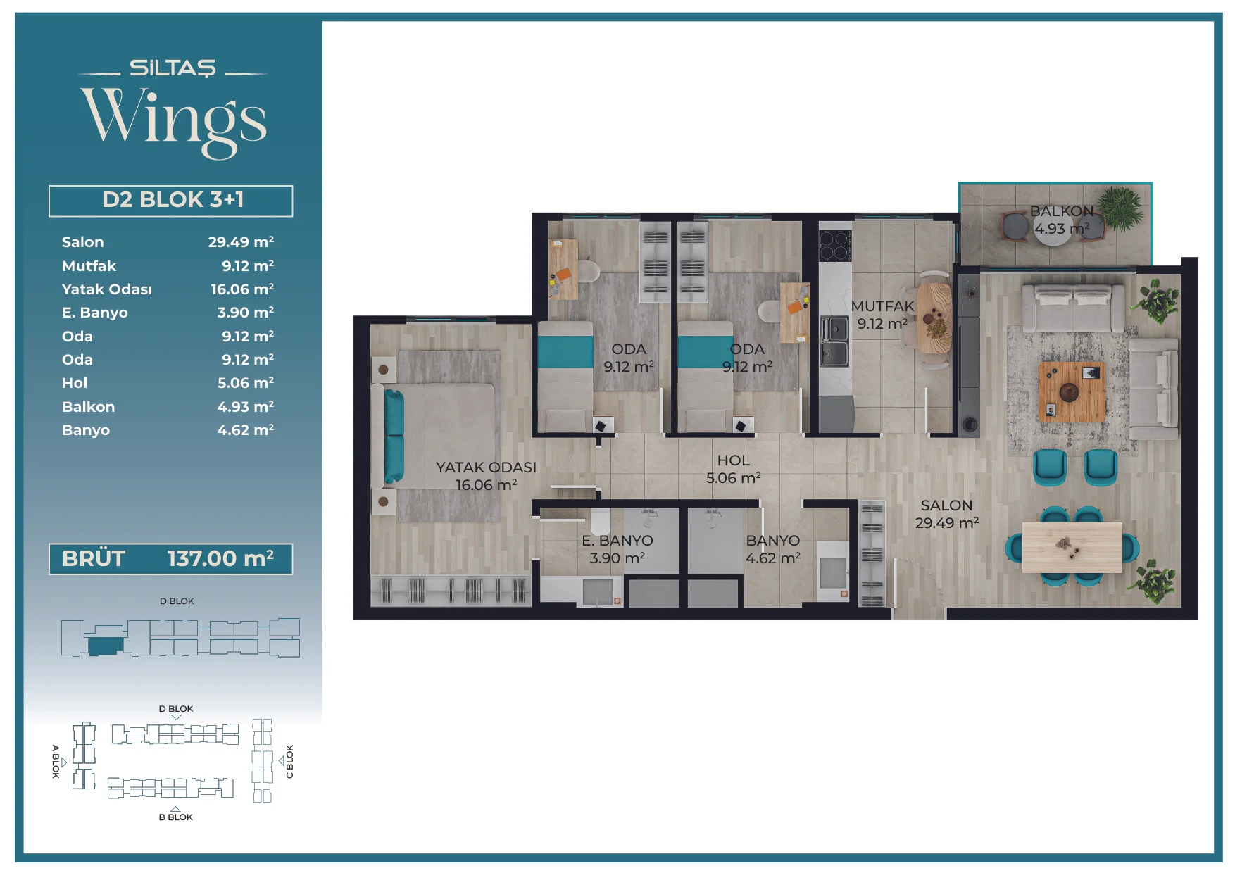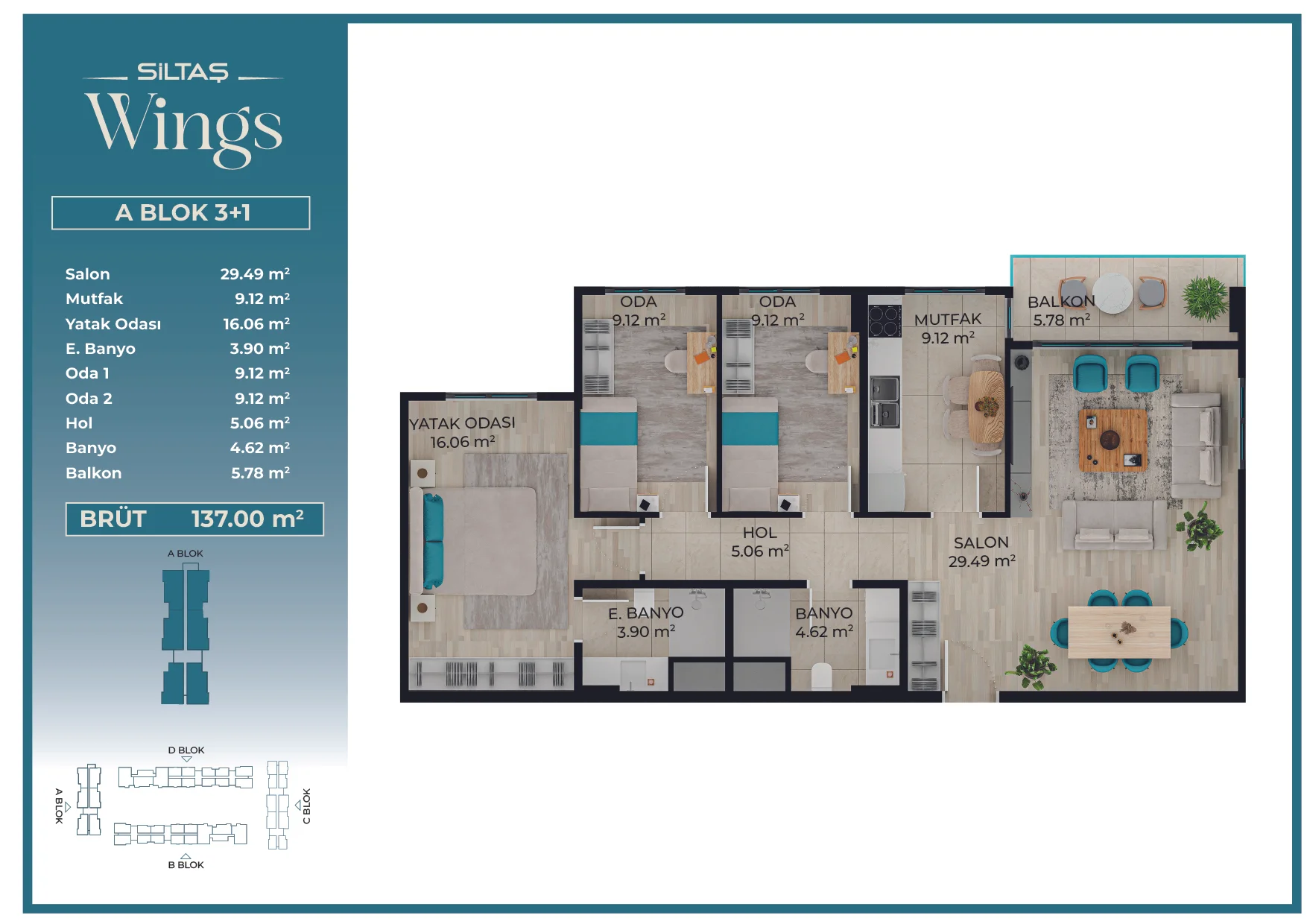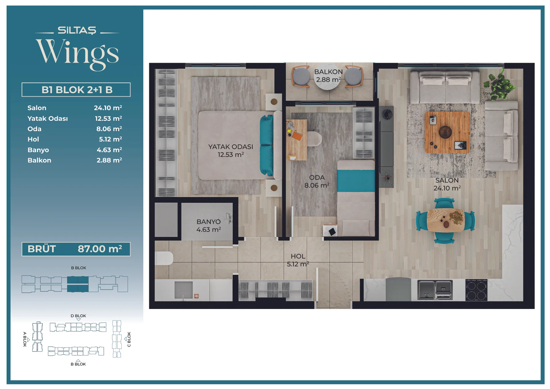 Her daire tipinde aynı yüksek standart, Siltaş Yapı’nın tüm projelerinde süreklilik gösteren kalite anlayışını yansıtır.